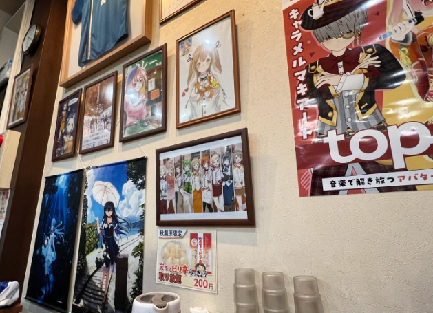 히노야 카레에 들어가면 온통 일본어로 적힌 메뉴들과 애니메이션 이미지들이 벽에 붙어있습니다.