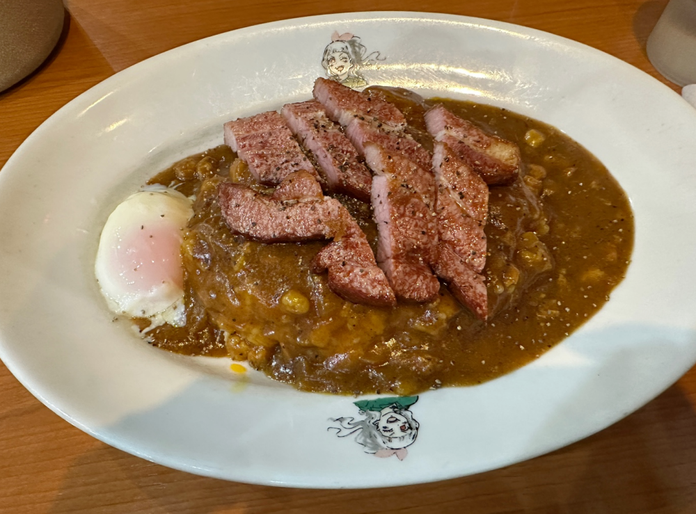 로스트비프카레 + 반숙 + 대파튀김