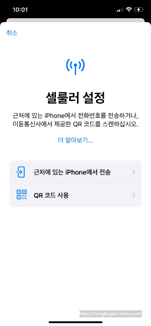 저는 아이폰을 이용 중으로, 이심을 설치하면 이미지와 같이 보이고 개인용 SIM을 사용하면 됩니다!