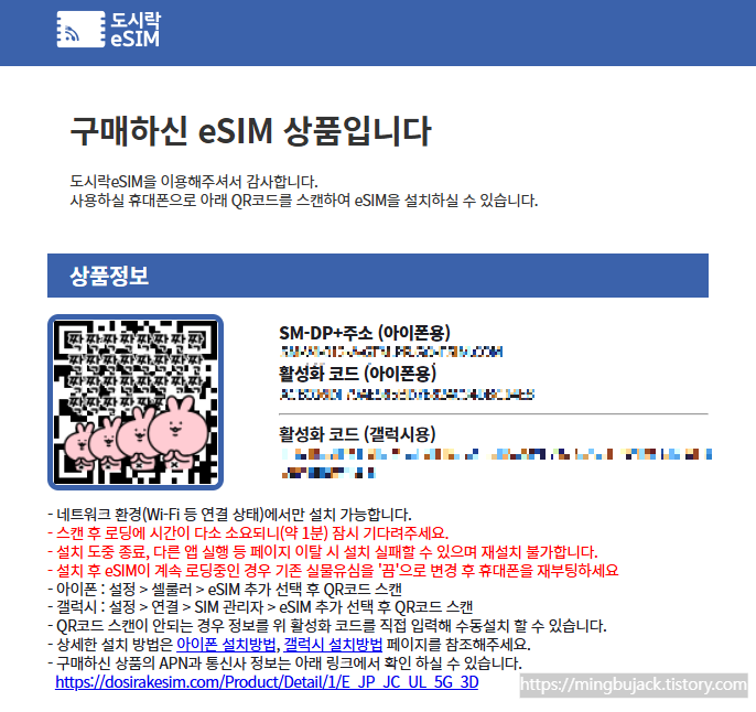 구매 후 메일로 오는 eSIM QR코드
