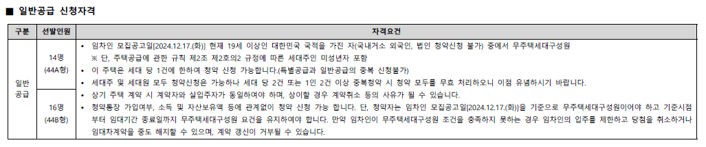 일반공급 : 19세 이상의 무주택 세대 구성원이라면 누구나 신청 가능