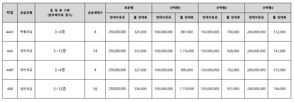 해당 공급은 특별공급과 일반공급이 나누어져 있어 각 공급유형마다 임대로가 다르고, 또 보증금과 임대료 비율을 정할 수 있어서 꼭 확인해 보는 것이 좋습니다!