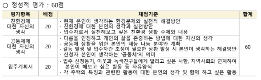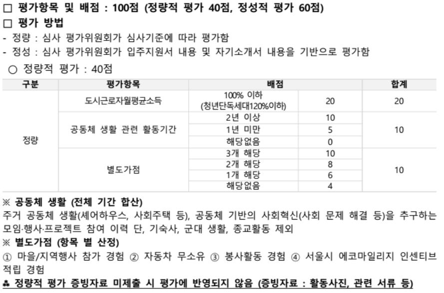 평가방법이 그저 가점과 추첨방식이 아니라, 정량적 평가와 정성적 평가라는 걸 하는데요, 다양한 평가항목에 따라 배점을 주어 평가합니다.