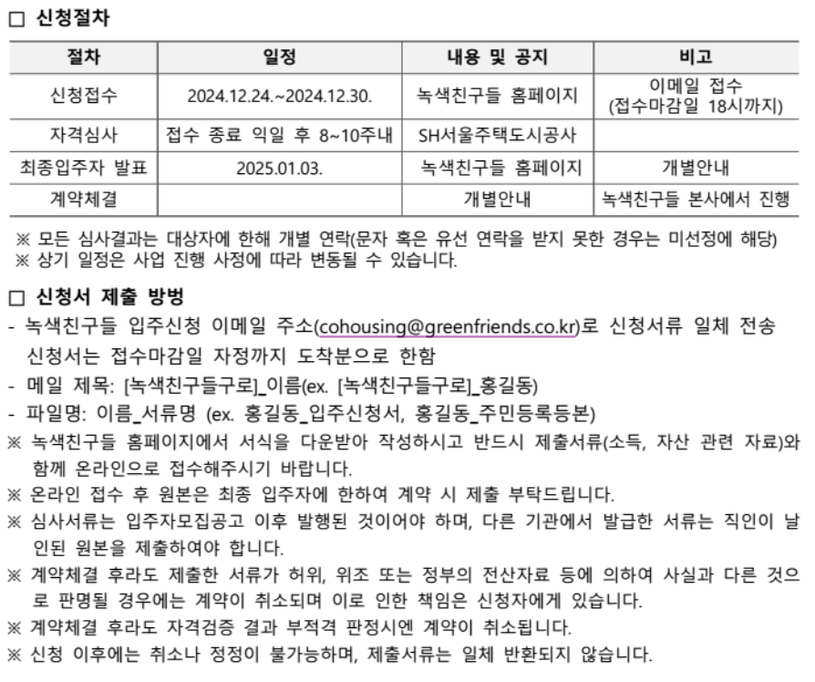 신청서는 녹색친구들 홈페이지에서 입주신청 관련 서류를 준비하여 마감일인 30일 18시까지 메일로 제출해야 합니다!