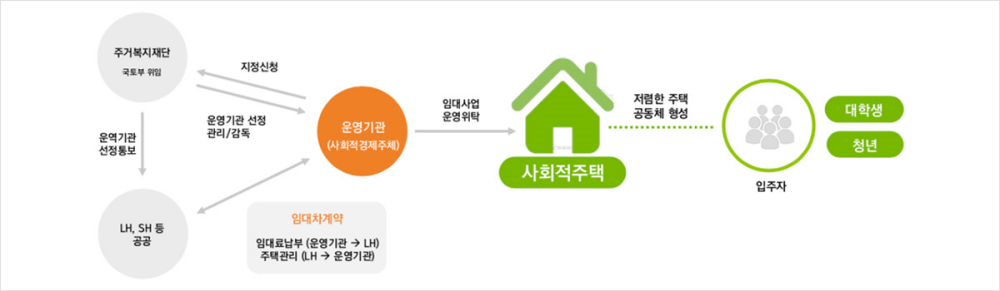 주거비 경감 및 안정적 주거환경을 위해 사회적 경제주체(운영기관)가 서울주택도시공사 매입임대주택을 활용하여 다양한 주거 서비스 프로그램등의 임대운영, 관리를 직접 수행하는 임대주택입니다.
