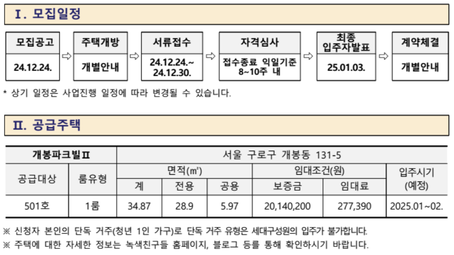 해당 공고는 청년형으로, 신청자 본인의 단독 거주(청년 1인 가구)로 세대구성원의 입주가 불가합니다!