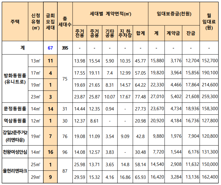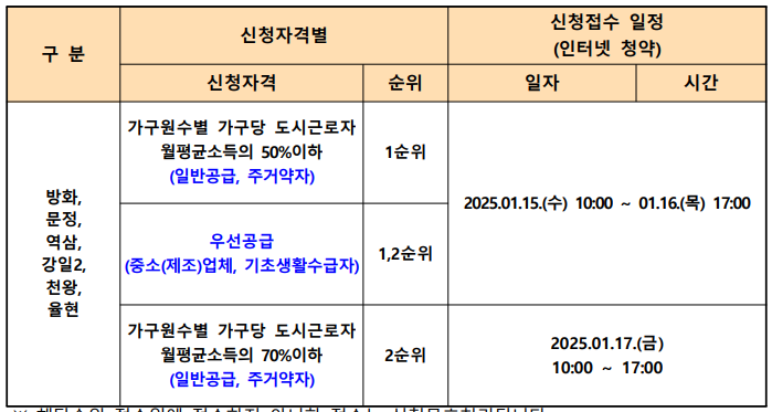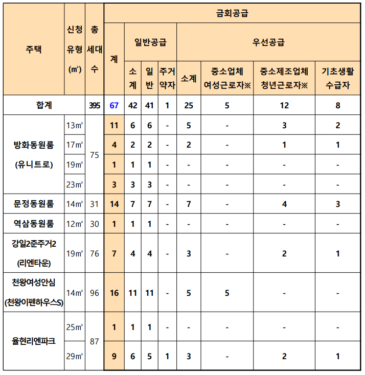 해당 공고는 각 공급주택마다 입주자 선정순위나 기준표가 다르므로 꼭 상세내역을 확인 후 지원하세요.