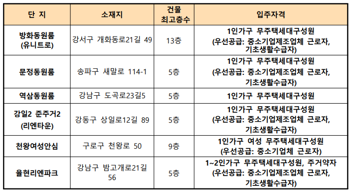 방화동원룸, 문정동원룸, 역삼동원룸, 강일 2 준주거 2(일반공급_1인가구)